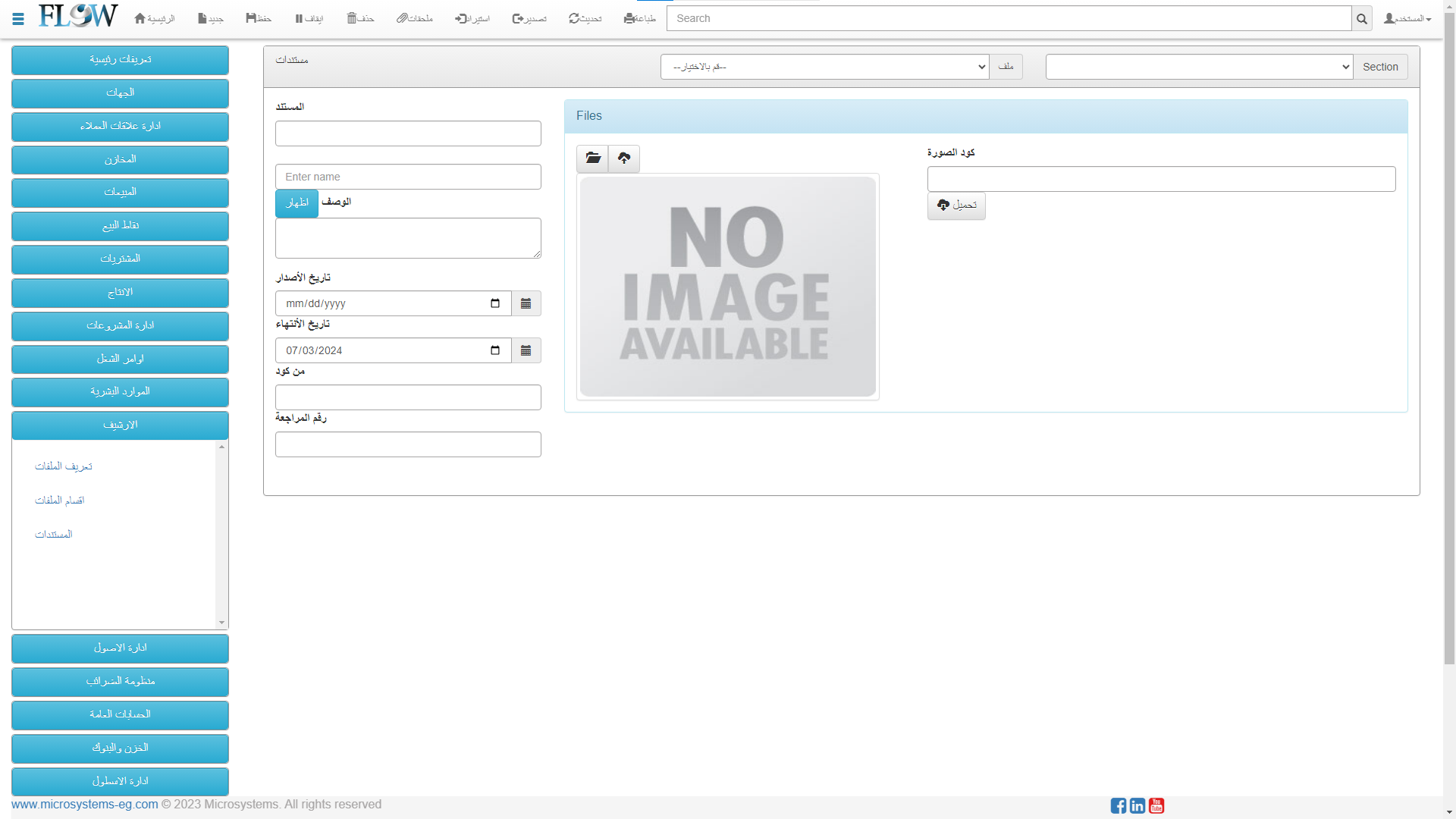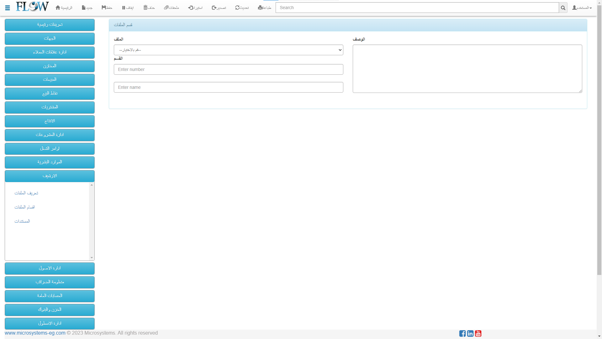 ويمكننا انشاء اقسام للملفات و ربط القسم علي اكثر من نوع ملف عن طريق اختيارنوع الملف المعرف مسبقا و تحديد كود و اسم للقسم و وصف توضيحي للقسم.