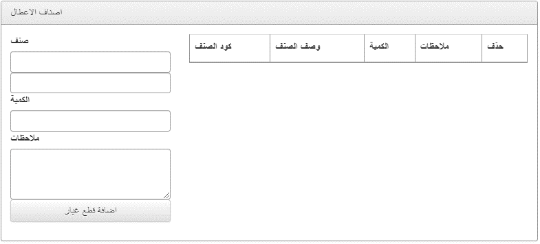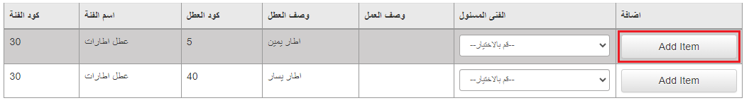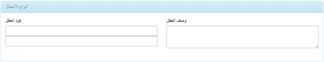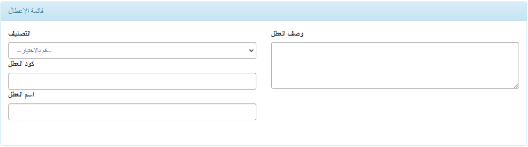 و من شاشة الاعطال بيتم تعريف الاعطال داخل كل فئات الاعطال المعرفة مسبقاً.