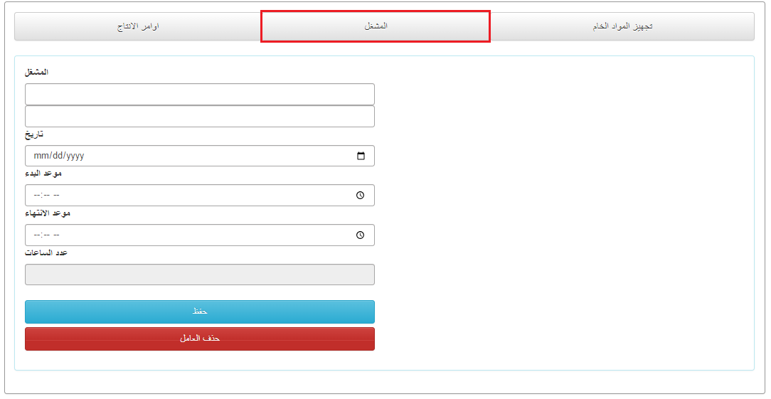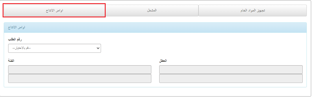 ومن شاشة التشغيل داخل اوامر الانتاج بيتم اختيار الطلب ليظهر جميع الاعطال و اختيار العطل و من شاشة المشغل بيتم تحديد الفني القائم بالصيانة و تحديد التاريخ و الوقت البداية و النهاية و عدد ساعات العمل علي العطل و من شاشة تجهيز المواد الخام تحديد الكمية المستخدمة لصيانة.