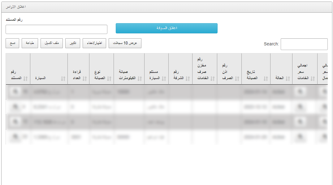 ومن شاشة اغلاق اوامر الصيانة لاغلاق امر الصيانة عن طريق اختيار امر الصيانة و اغلاقة.