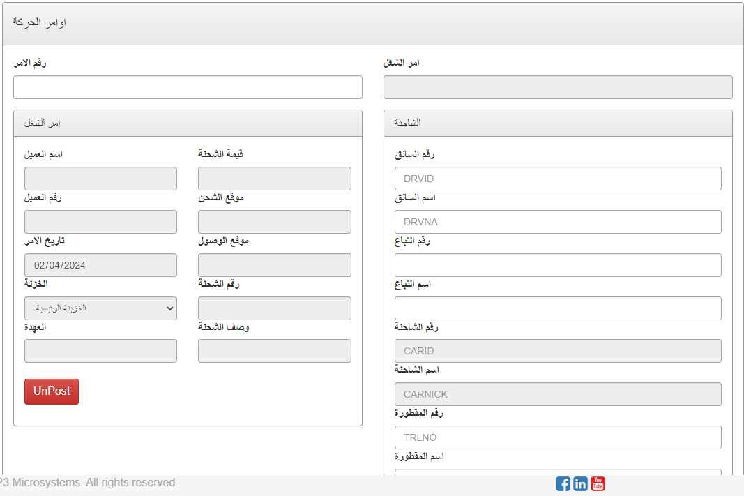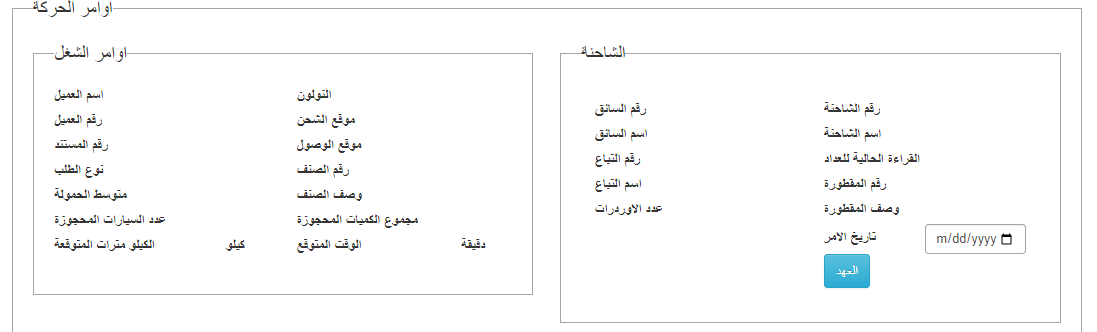 ومن شاشة اوامر الحركات بيتم تحديد الشاحنات للاوامر الشغل .