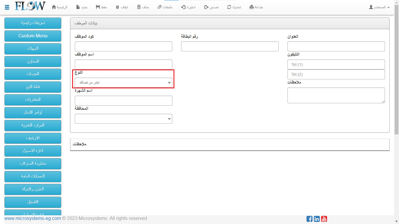 و من شاشة تعريف الموظفين يمكننا تعريف الموظف و تحديد اذا كان سائق ام تباع